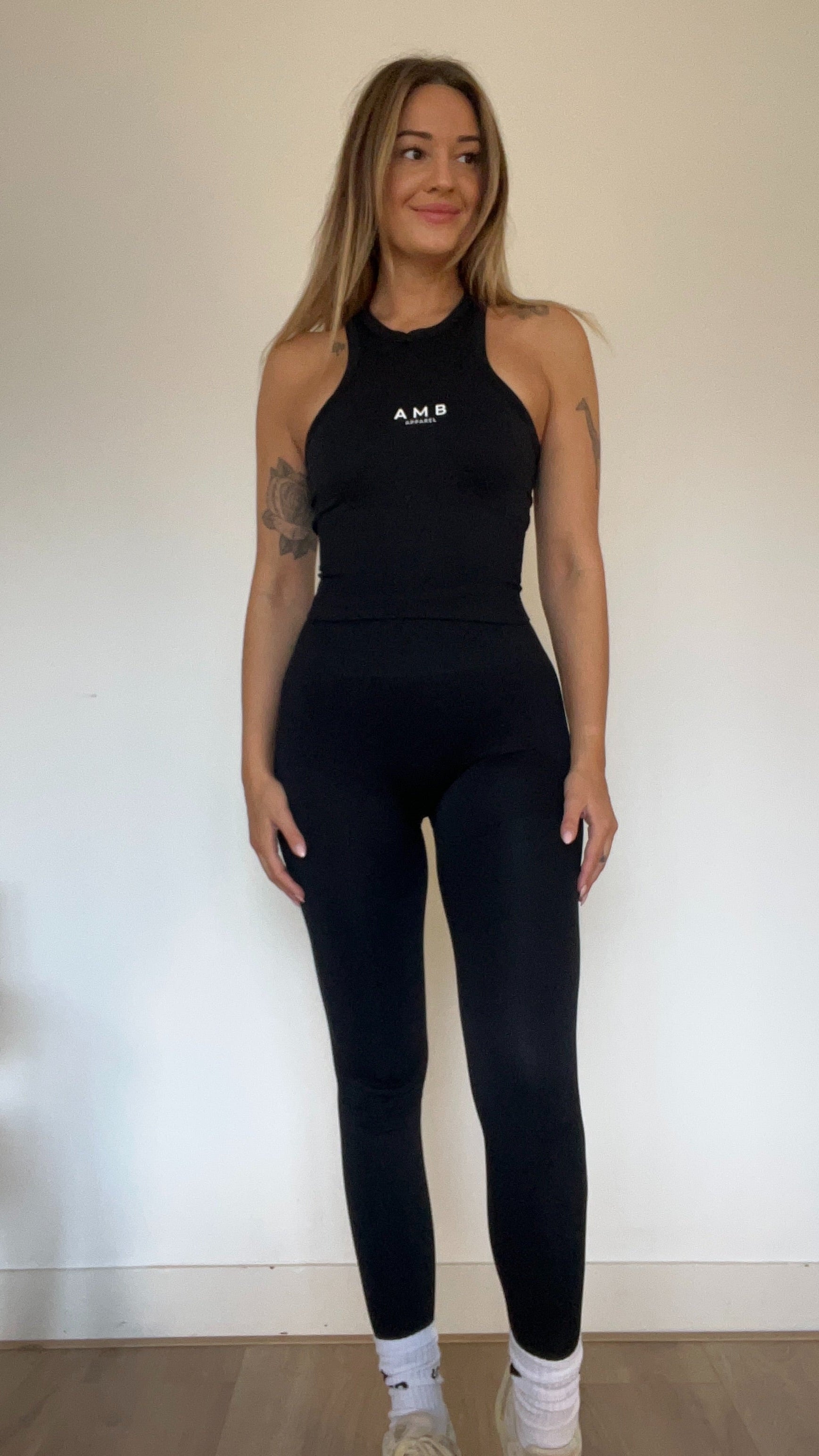 Prachtige haltertop van sweatproof stof. Uitneembare cups.